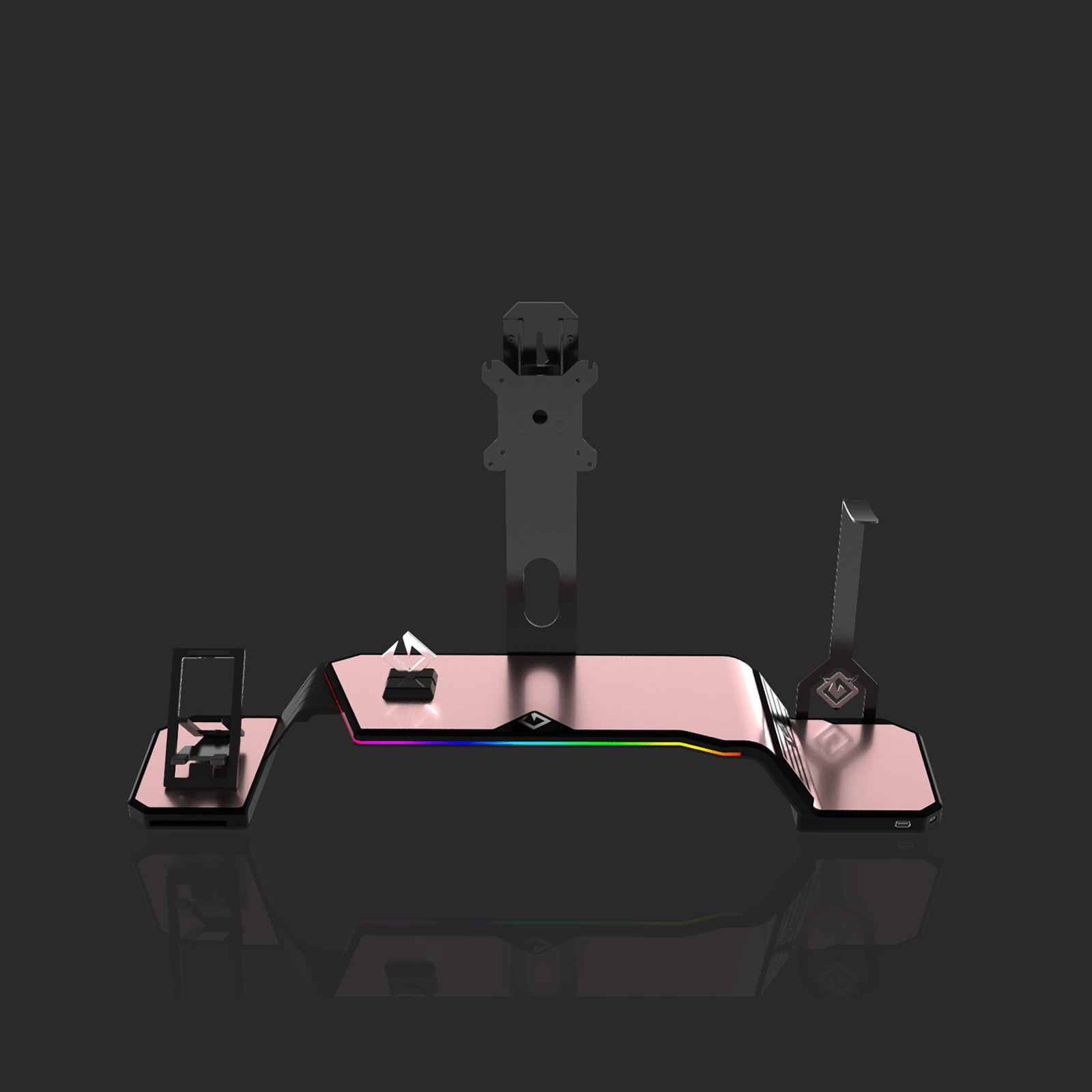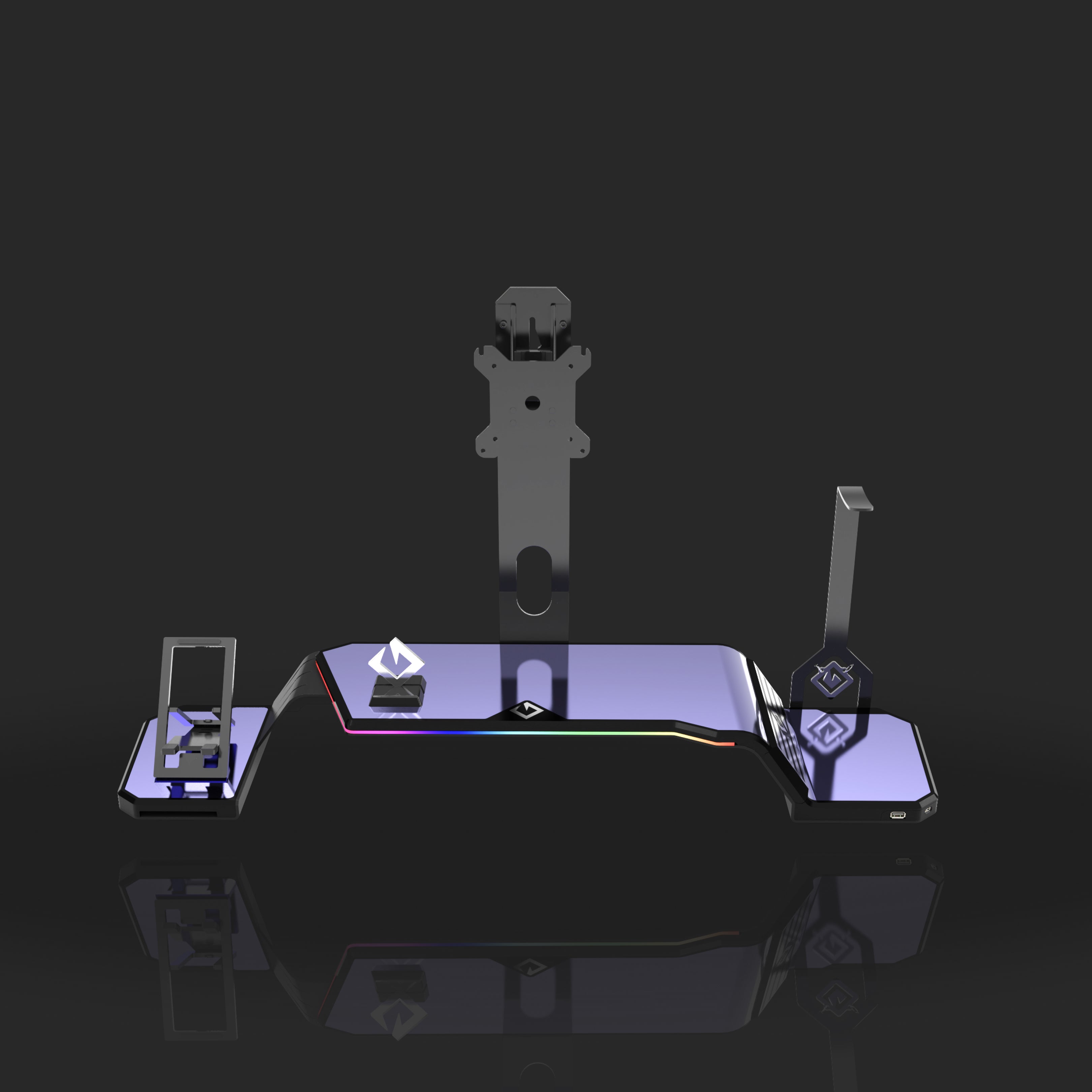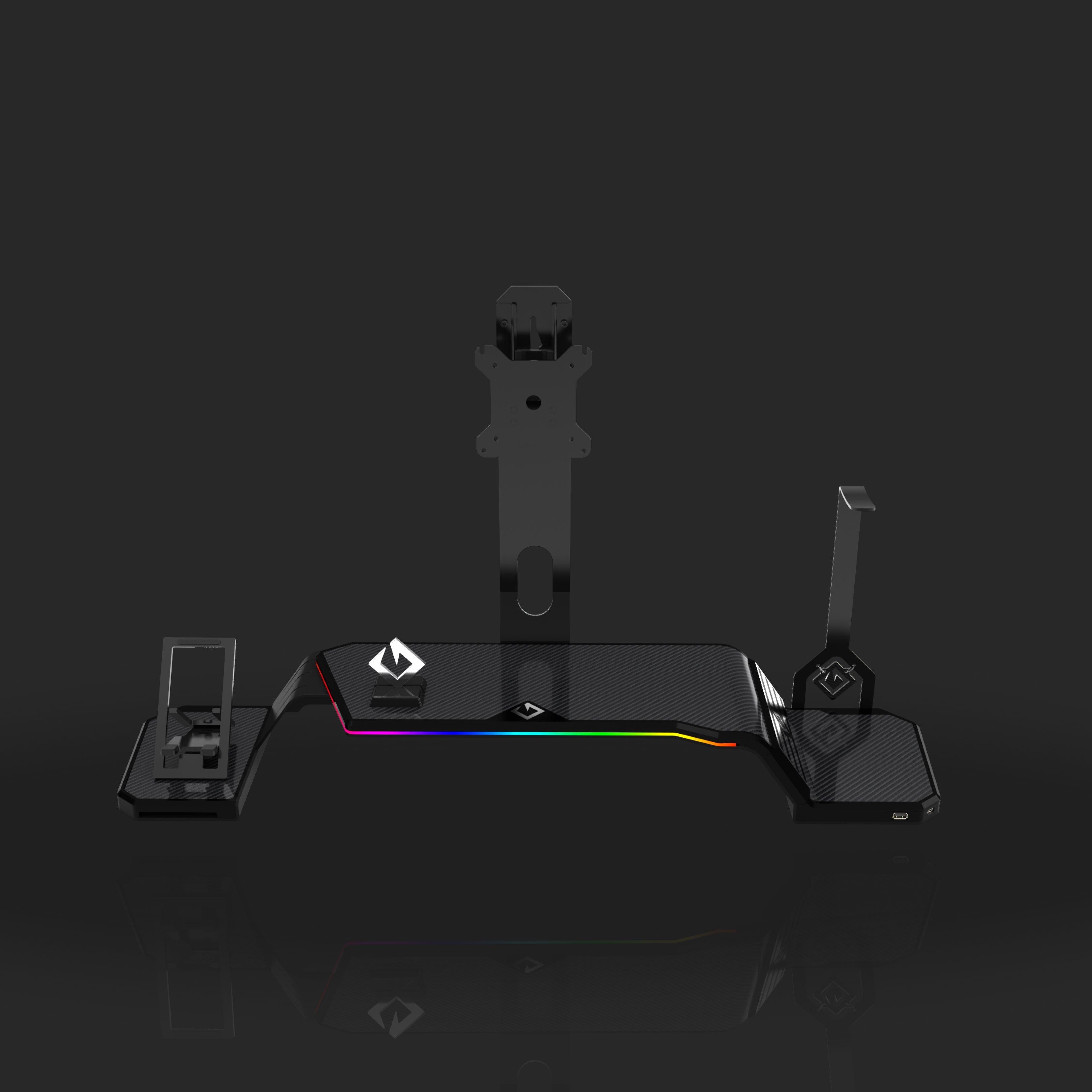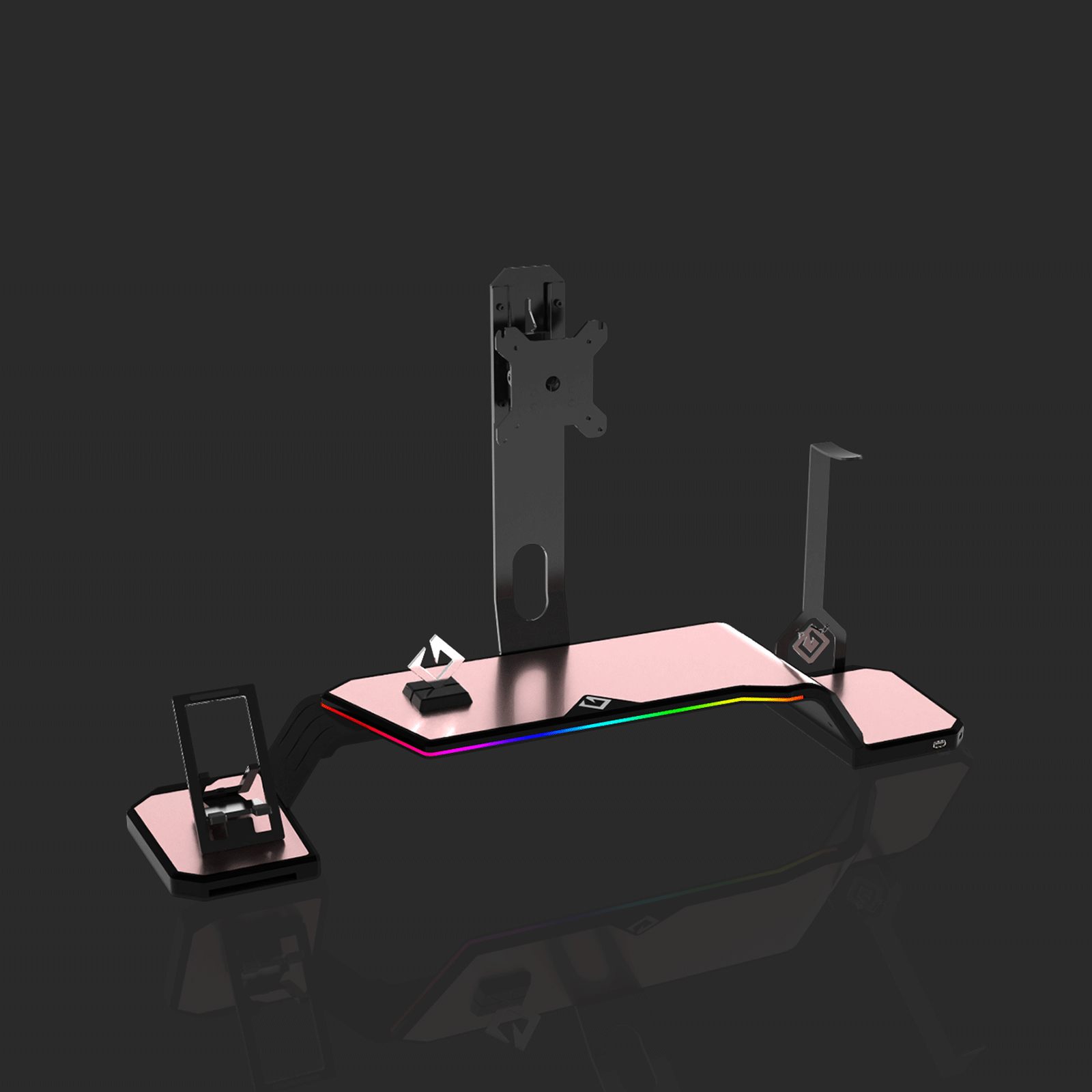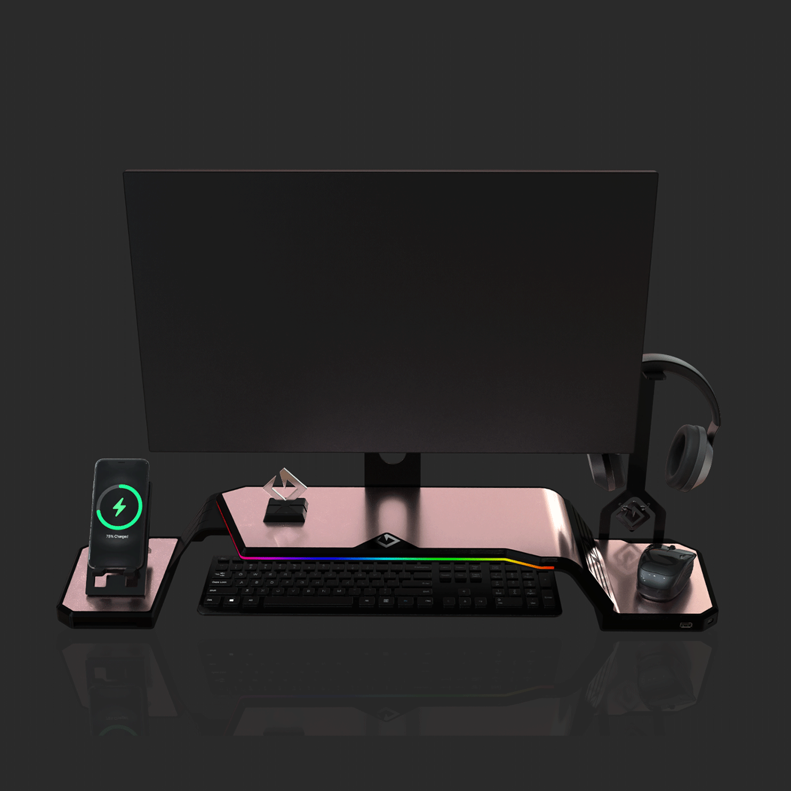 The ultimate monitor stand for desk to optimize your workspace. This desk monitor stand is equipped with a Headphone Stand, Foldable Phone Stand, and USB Hub (1× USB-C, 2× USB 3.0). Personalize your setup with customizable RGB lighting and ergonomic design, supporting VESA-compatible monitors from 17" to 32" (VESA 75×75mm and 100×100mm).